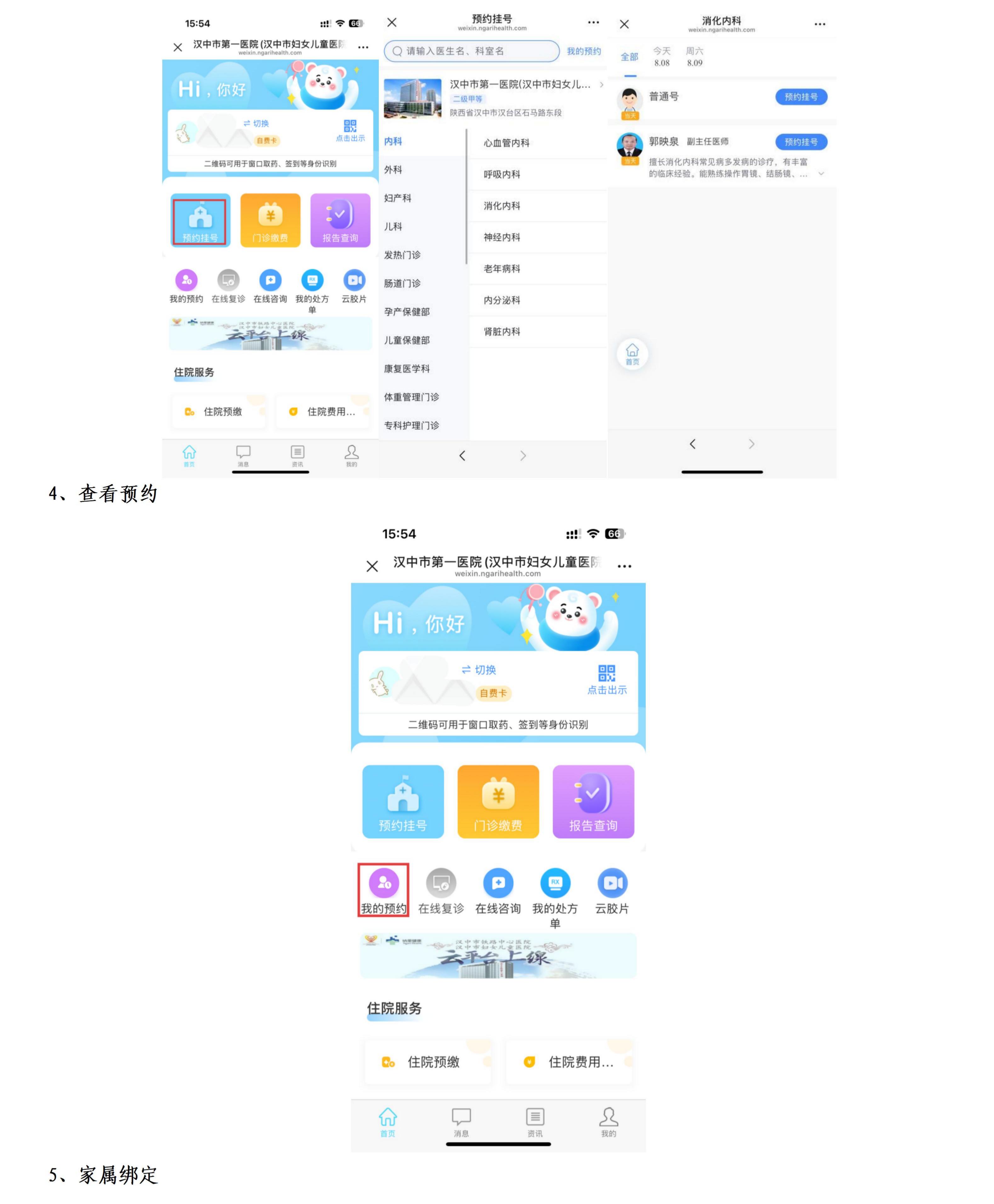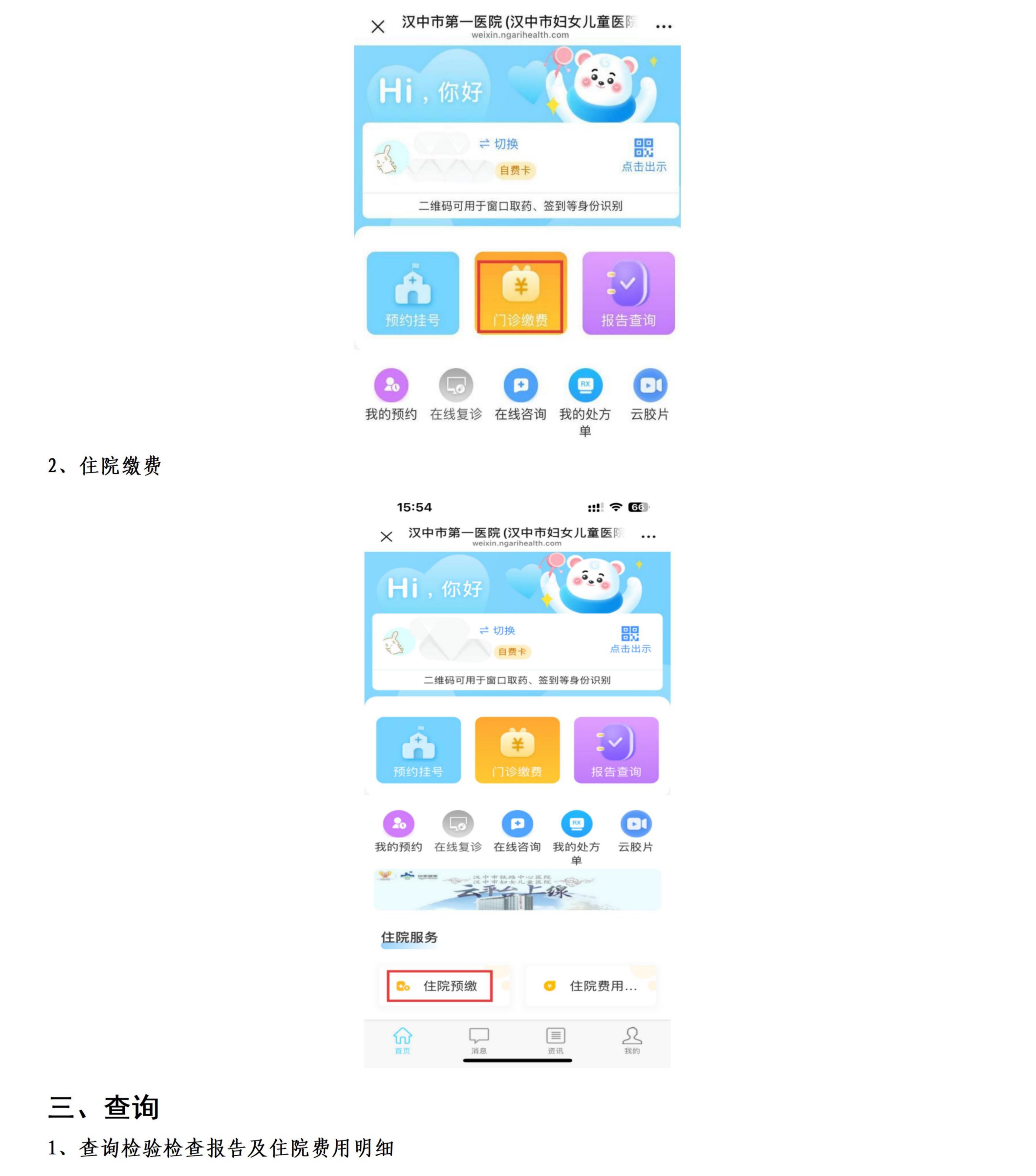 汉中市第一医院服务号挂号缴费查询等操作指南